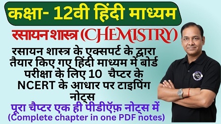 बोर्ड परीक्षाओं के लिए कक्षा 12वीं भौतिक शास्त्र के 10 चैप्टर के नोट्स इसमें चैप्टर 1 से लगाकर चैप्टर 10 तक के पीडीएफ नोट्स उपलब्ध होंगे रसायन शास्त्र के एक्सपर्ट के द्वारा तैयार किए गए हिंदी माध्यम में बोर्ड परीक्षा के लिए 10 चैप्टर के NCERT के आधार पर टाइपिंग नोट्स